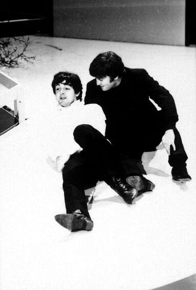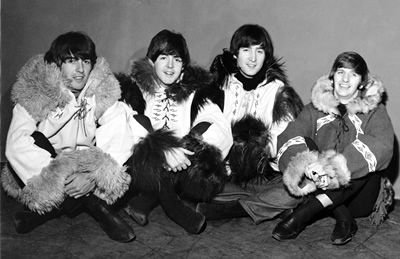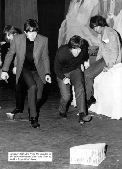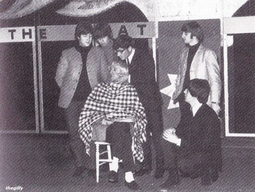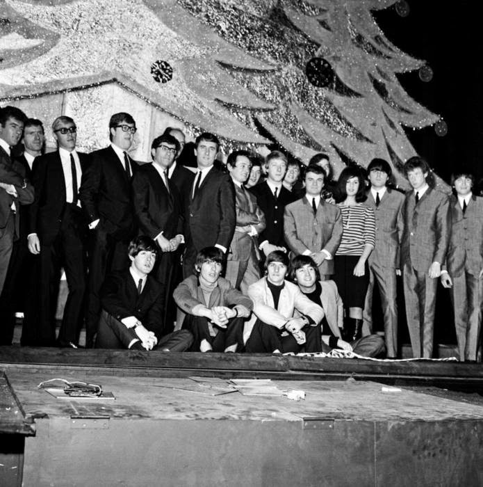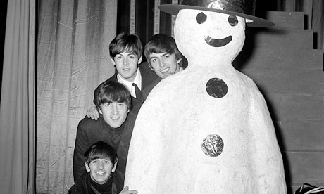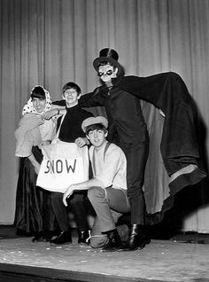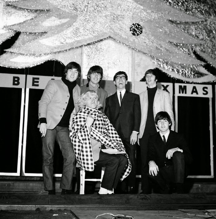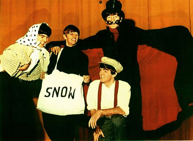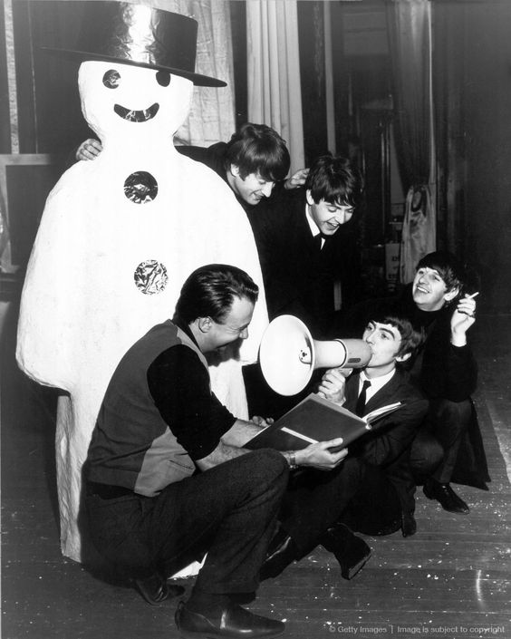 The Beatles meet a snowman at the Finsbury Park Astoria, London, where they are rehearsing for the Christmas Show. December, 1963. S) Richard Starkey, George Harrison, Paul McCartney, and John Lennon (The Beatles Christmas Show) EPSON scanner image BEEM59 The Beatles practice for their Christmas show at Hammerstein Odeon The Beatles Christmas Show at the Astoria Cinema in Finsbury Park, London.
