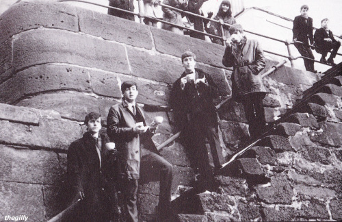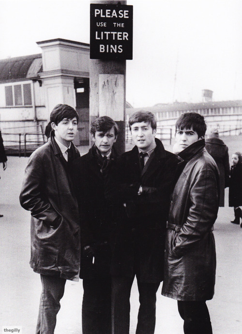 The Beatles by the river Mersey in Liverpool. 19 February 1963. Photo by Michael