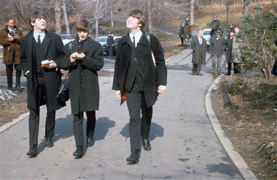 FEBRUARY 8, 1964 – On their first full day in New York, a morning a press conference was held in the Baroque Room at New York’s Plaza Hotel where The Beatles were staying during their first night in the US. Following this John Lennon, Paul McCartney and Ringo Starr went for a walk and photo opportunity in Central Park, where their every move was followed by around 400 female fansand extra police were called in to control them.George Harrison was suffering from a streptococcal sore throat, and so remained in the Plaza. He was joined there by his sister Louise Caldwell, a resident of Illinois.Caldwell in “The Beatles Off The Record” by Keith Badman: “The doctor said he couldn’t do The Ed Sullivan Show because he had a temperature of 104! But they pumped him with everything. He was thinking about getting a nurse to administer the medicine, every hour on the hour. Then the doctor suddenly realized that I was there and was his sister and he said to me, ‘Would you see to it? It’s probably just as well that you’re here because I don’t think there’s a single female in the city that isn’t crazy about The Beatles! You’re probably the only one who could function around him normally’.”At 1.30pm The Beatles – minus George – travelled by limousine to the CBS studios on Broadway for the first of several rehearsals for their debut appearance on The Ed Sullivan Show. During the journey their cars were charged by fans, and mounted police were forced to intervene to keep order.Ten mounted police guarded the studios along with 52 officers while The Beatles were inside. Their first duty was to join AFRA, the American equivalent of the Musicians’ Union.For the rehearsal Neil Aspinall stood in for George, as did production assistant Vince Calandra, while the director rehearsed the camera positions for the following day’s filming.Vince Calandra in “The Beatles Off The Record” by Keith Badman: “The first thing I noticed about them was that they were very polite and very professional. I remember the picture of Ed Sullivan with The Beatles’ wig and his comment, when George was ill, ‘He’d better show up tomorrow ‘cos I’ll be the fourth Beatle!’ And he put the wig on. I also stood in for George that day for camera rehearsals”.Afterwards The Beatles asked to see a playback of their rehearsal, which no other musical act had previously asked for. The group was also interviewed by The Ronettes.In the evening Lennon, McCartney and Starr went to the 21 restaurant with George Martin and executives from Capitol Records. The Beatles ate chops while their music industry companions had pheasant.
